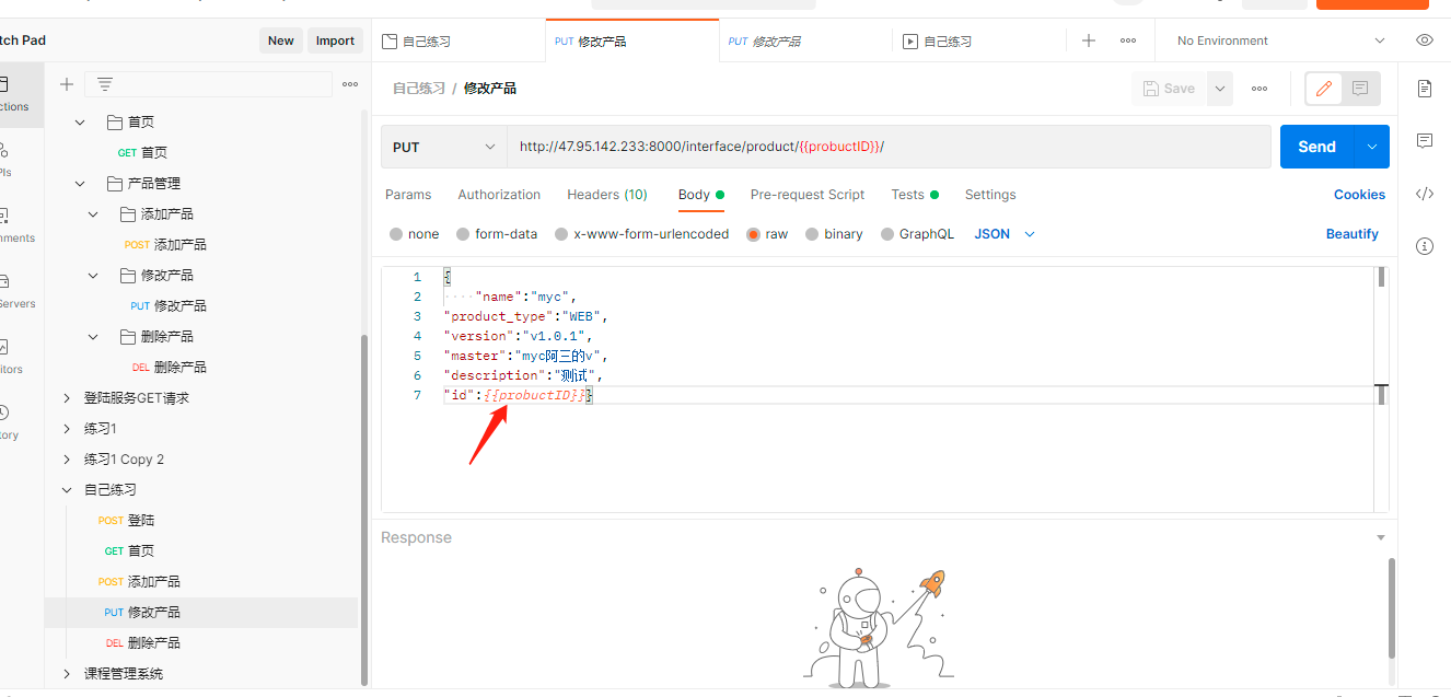1:由于ID是动态的 所以 复制到body的数据中的id也是要动态的如图