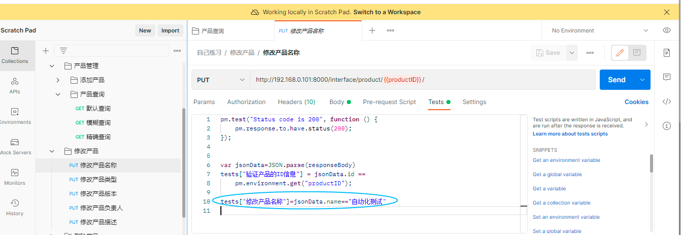 1、id是动态的 2、在Body修改了,再在tests页面断言判断下