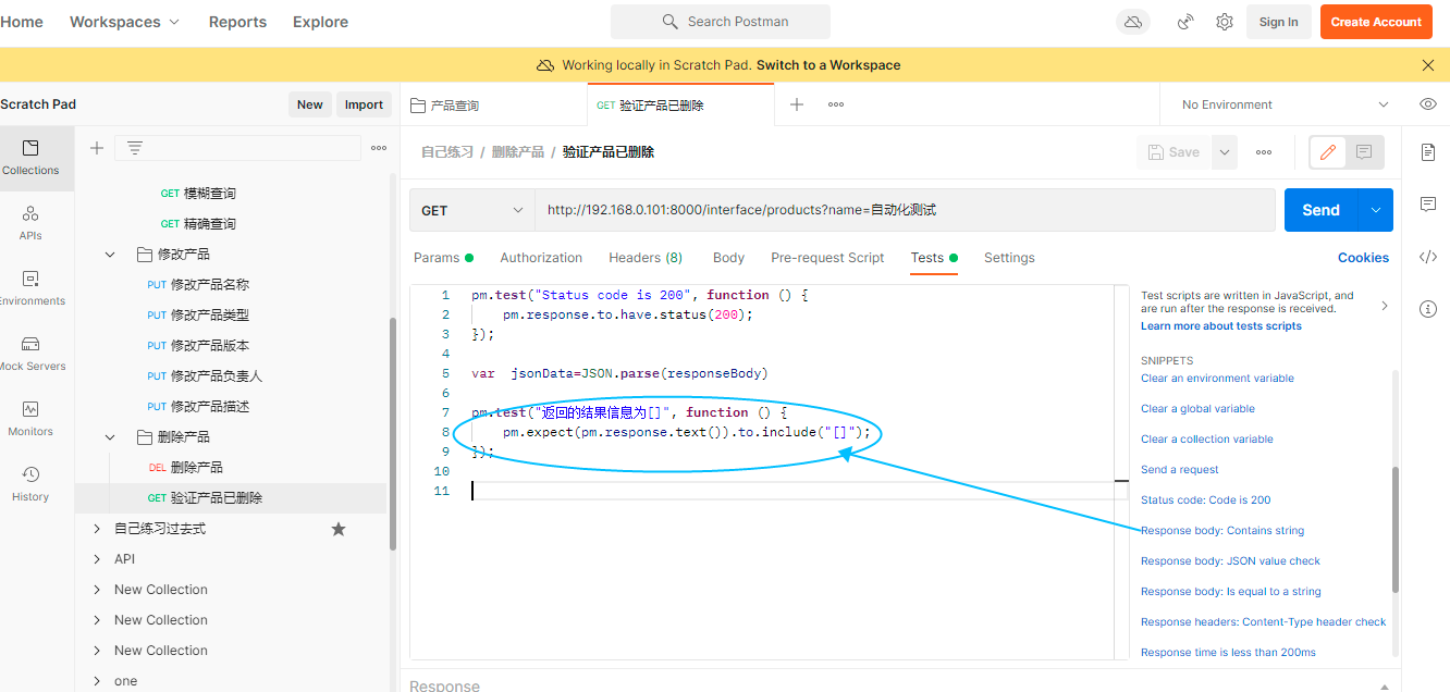 注意:为了判断删除产品是否成功我们边需要添加个验证产品已删除