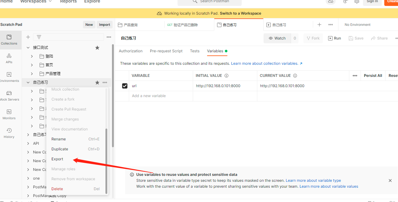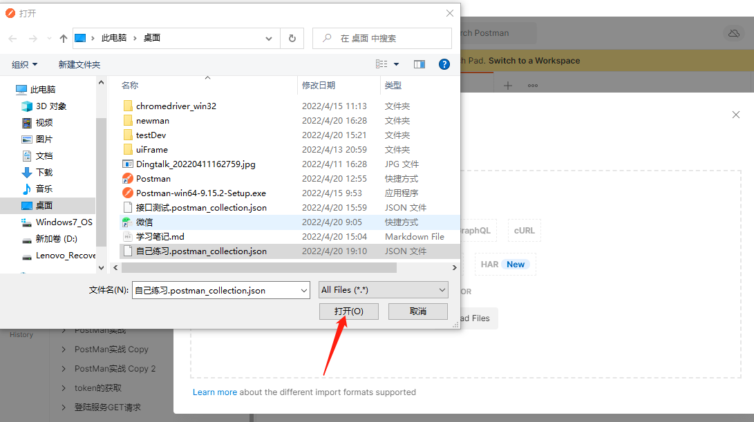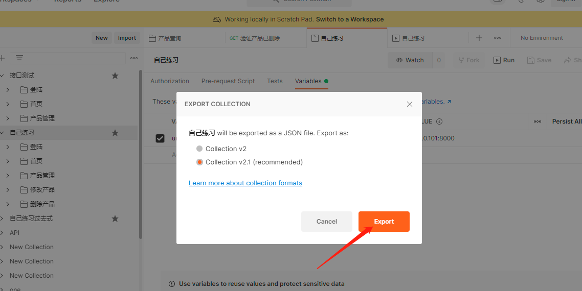 --自己练习.postman_collection.json:是我导出到桌面json文件的名称