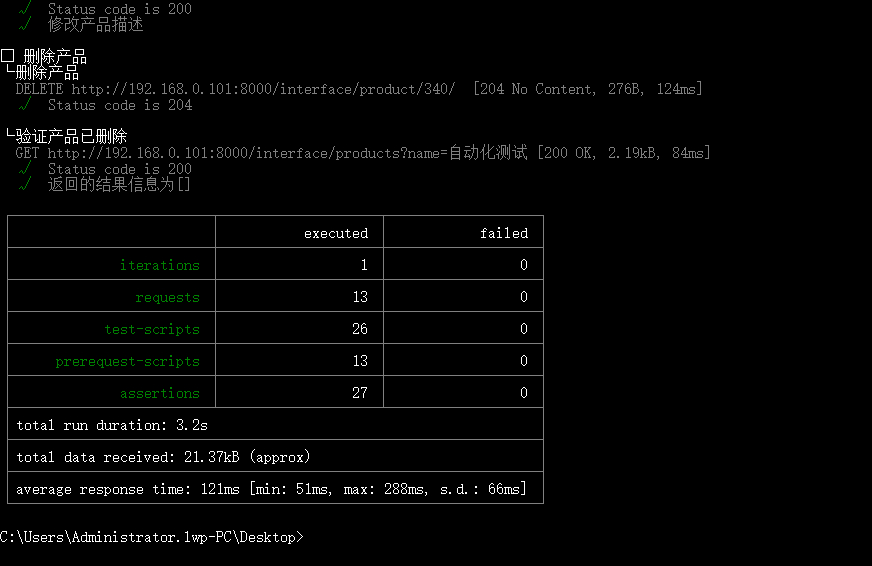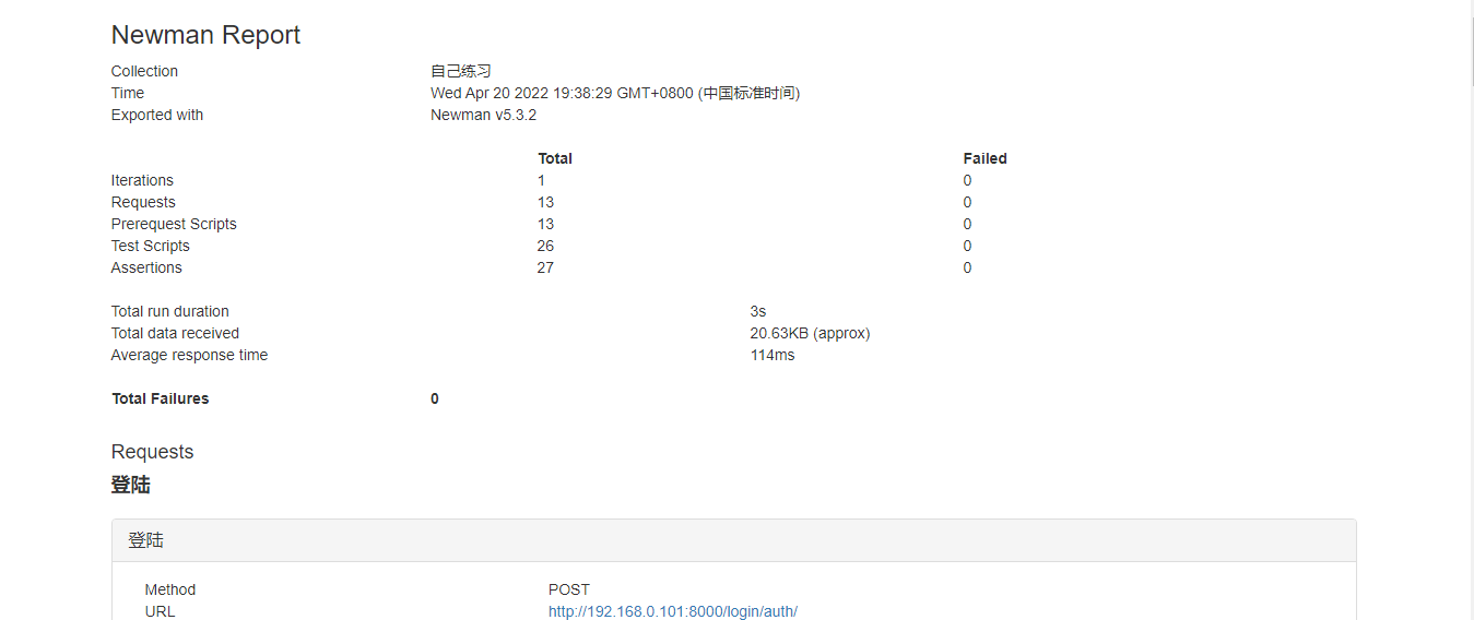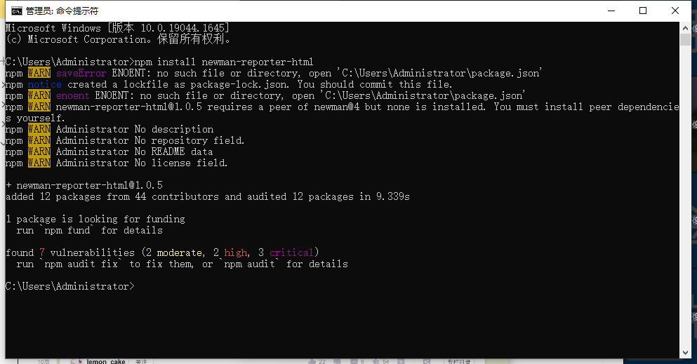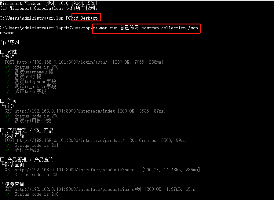 在这个之前需要在线安装 npm install newman-reporter-html 插件 安装成功会出现以下