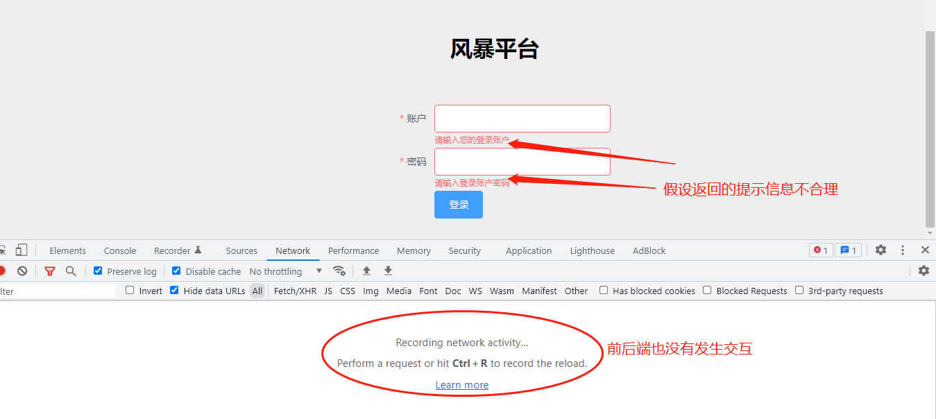 1、假设返回的错误提示信息不合理,但是前端和后端没有发生网络请求,那么就是前端的问题