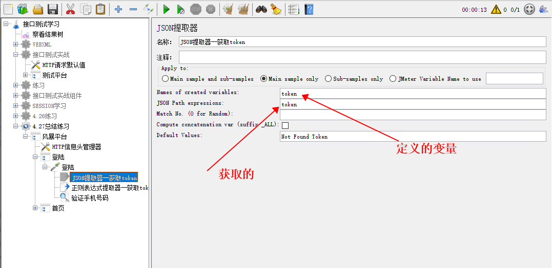 1、在登陆接口中添加后置提取器中的JSON提取器或者正则表达式提取器