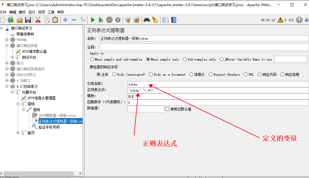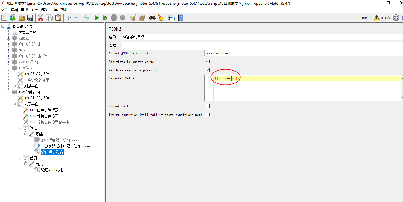 (3)如果线程组有验证号码 这里需要改下--针对测试平台案例 这里的电话号码用的是用户名 所以这里也需要调用下