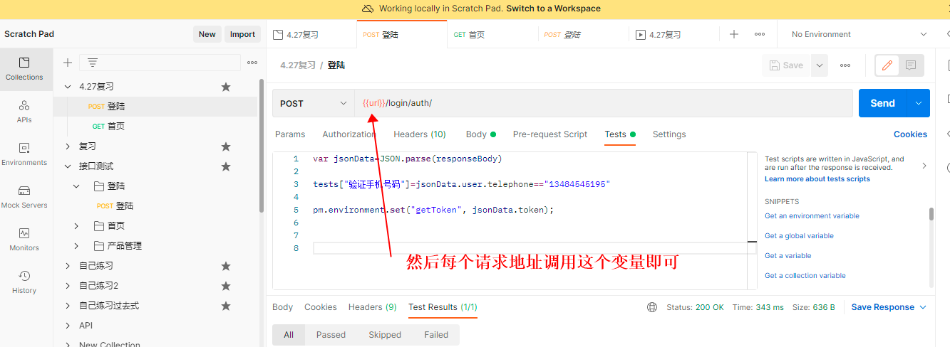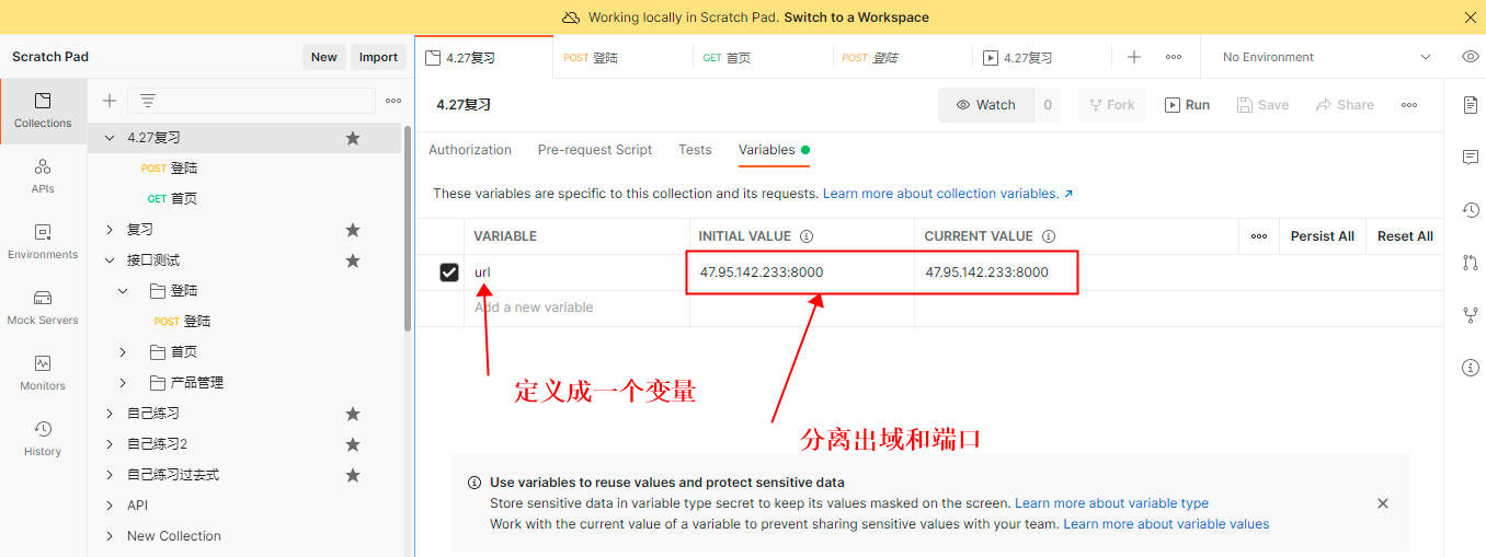 1、对应的Postman集合的Variables中定义一个变量,分离出公共数据