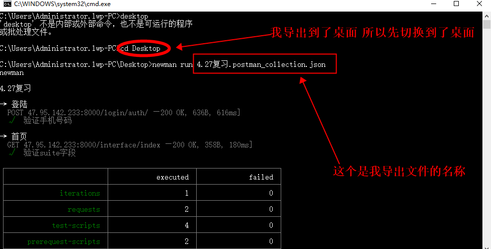 在控制台输入:newman run 接口测试.postman_collection.json -r html