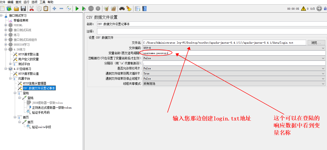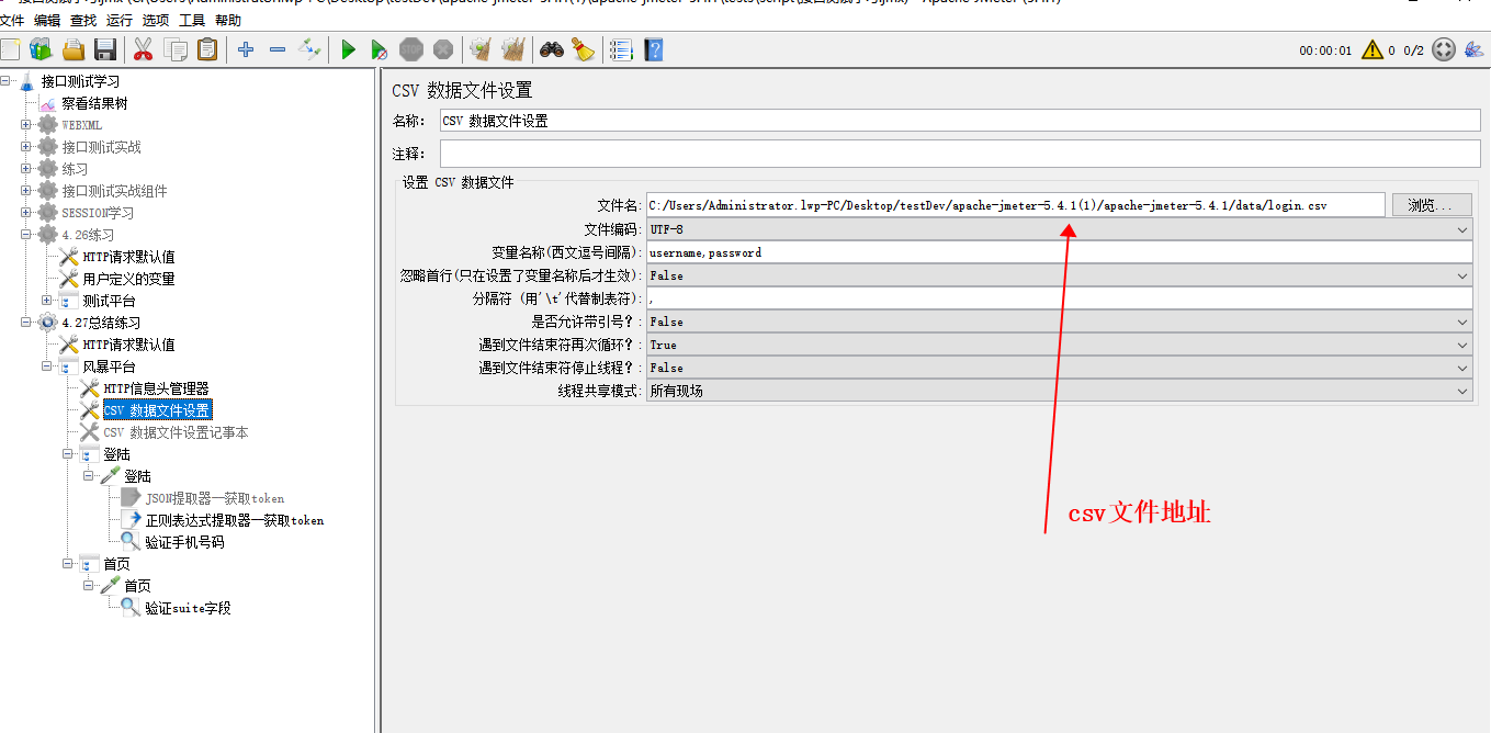 注意:这里想使用几个用户登陆,就给login.csv文件中多填几个用户名和密码