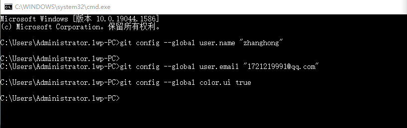 git config --global user.email "1721219991@qq.com" ---通知你消息