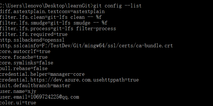 git config --list config 这个是配置的意思 出现如图就没有问题了