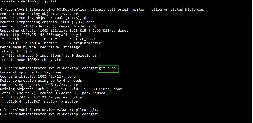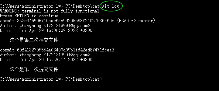 克隆之后第一次提交文件 (新建了一个zhanghong.txt文件 并存储了一些文字)
