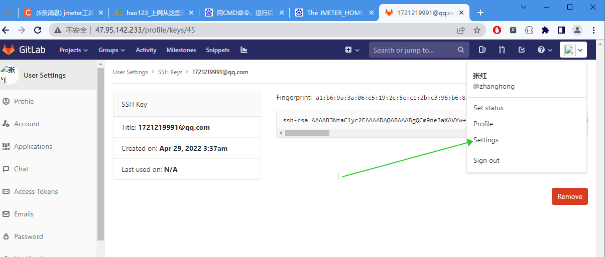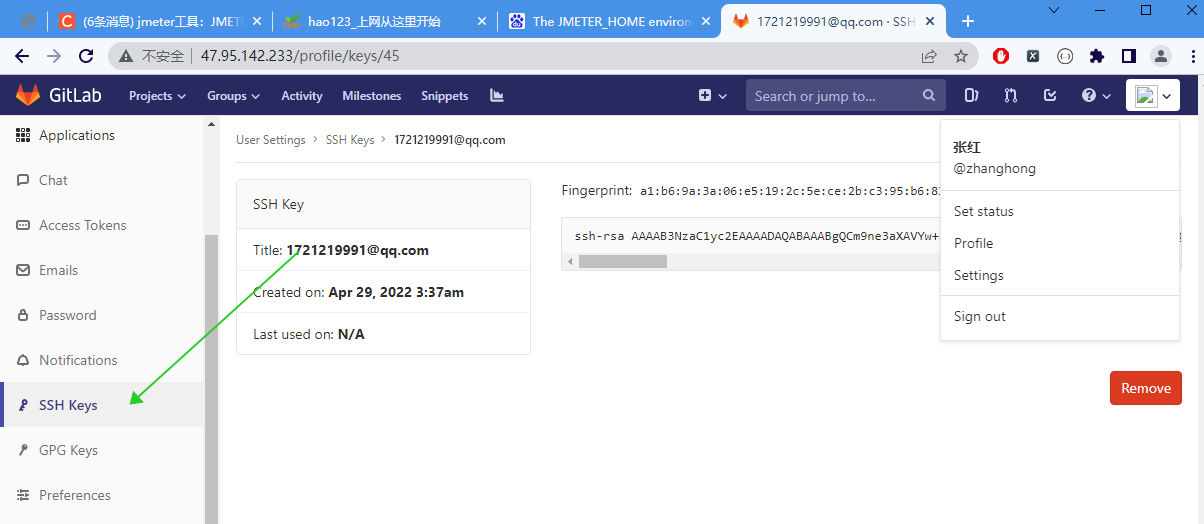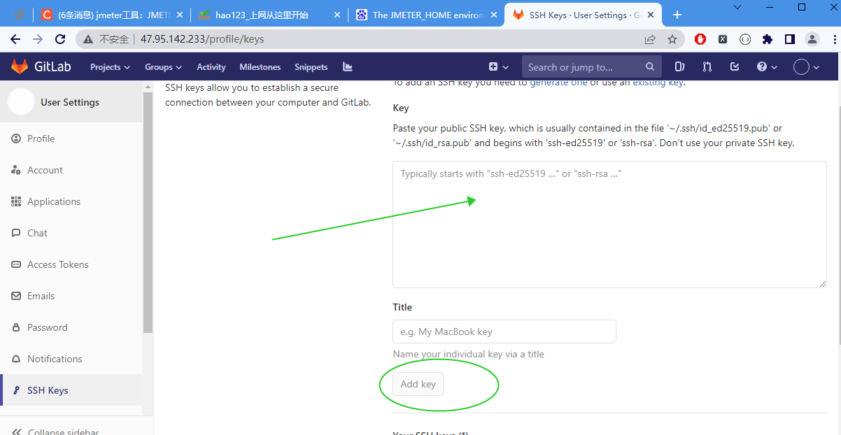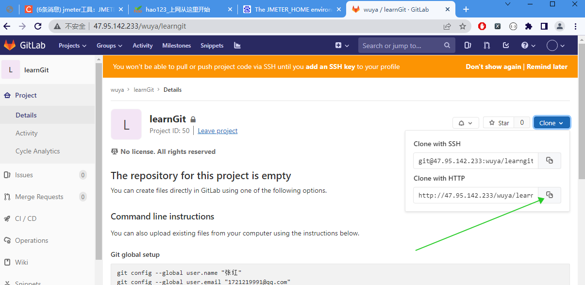 本地与GitLab平台之间缺少通信的信任,所以需要配置密钥: