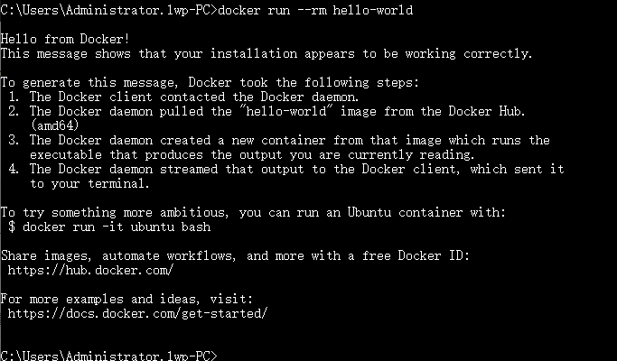 docker run --rm hello-world 容器退出时删除容器的记录信息