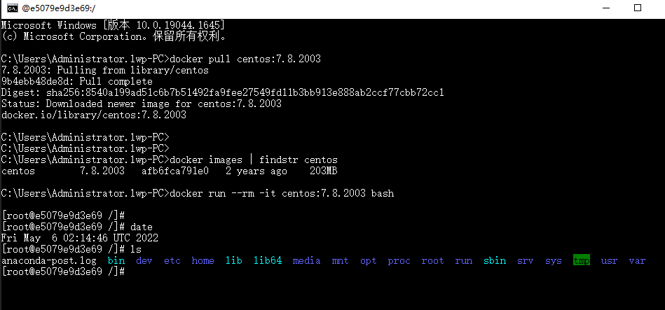 docker run --rm -it --name linux centos:7.8.2003 bash