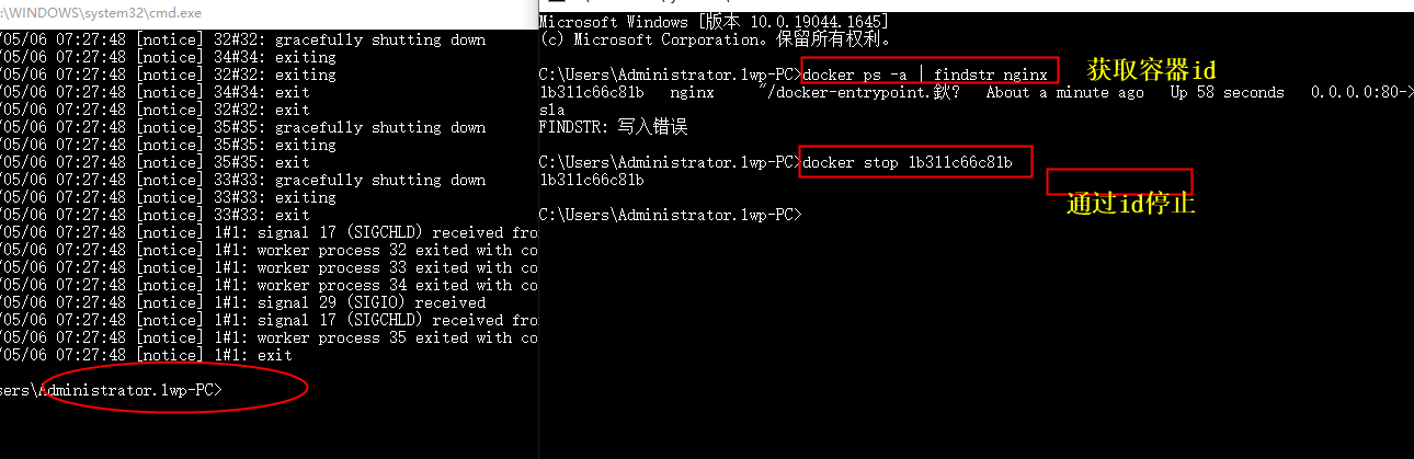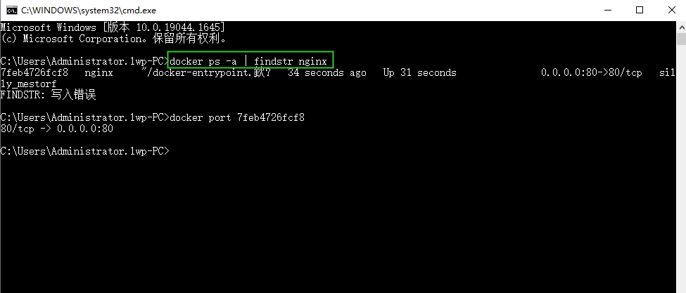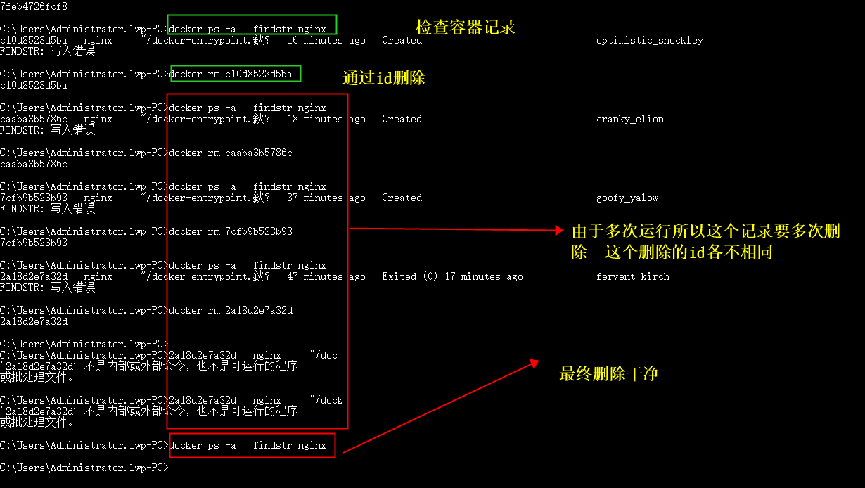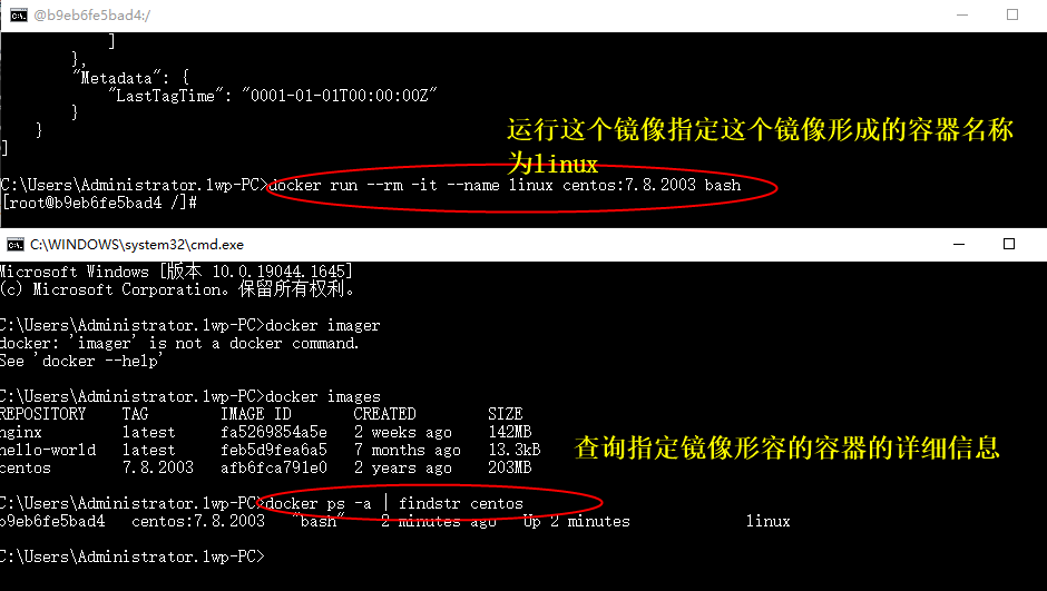 docker ps -a | findstr centos #查看运行的容器记录信息