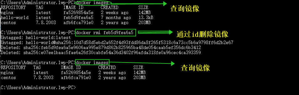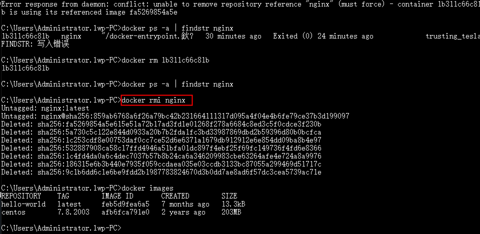 如果一个镜像被容器运行了,那么删除镜像的步骤可以总结为: