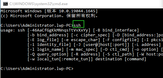 1、打开控制台输入ssh--如果出现如图,则本地的ssh就可以操作
