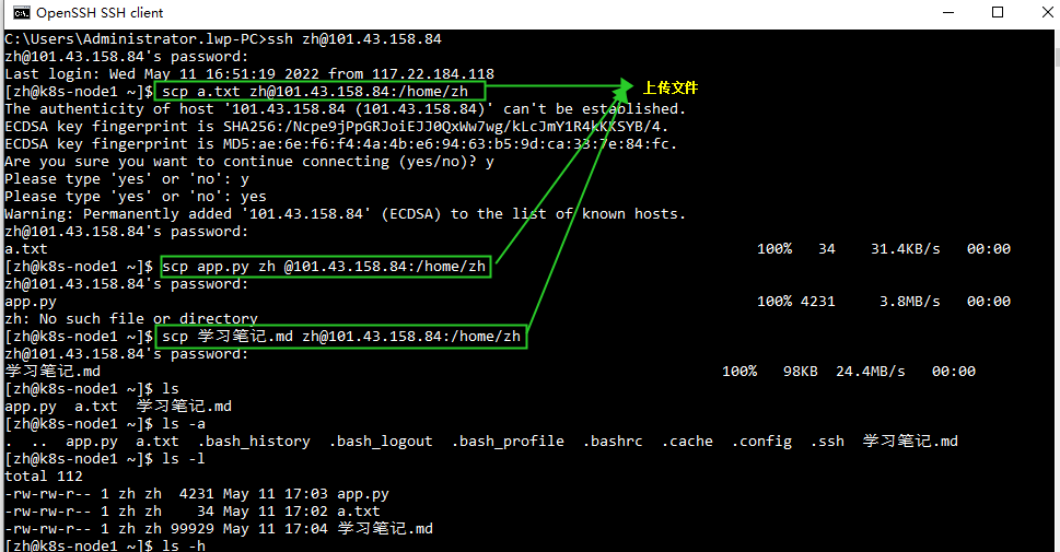 scp 文件名称 zh@101.43.158.84:/home/zh