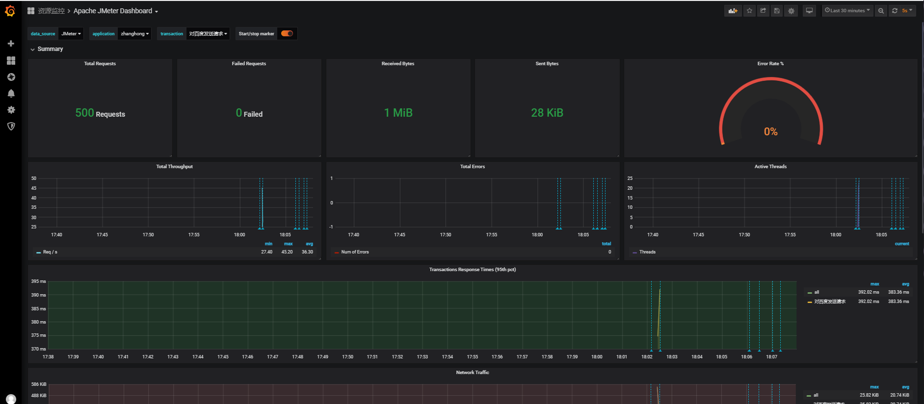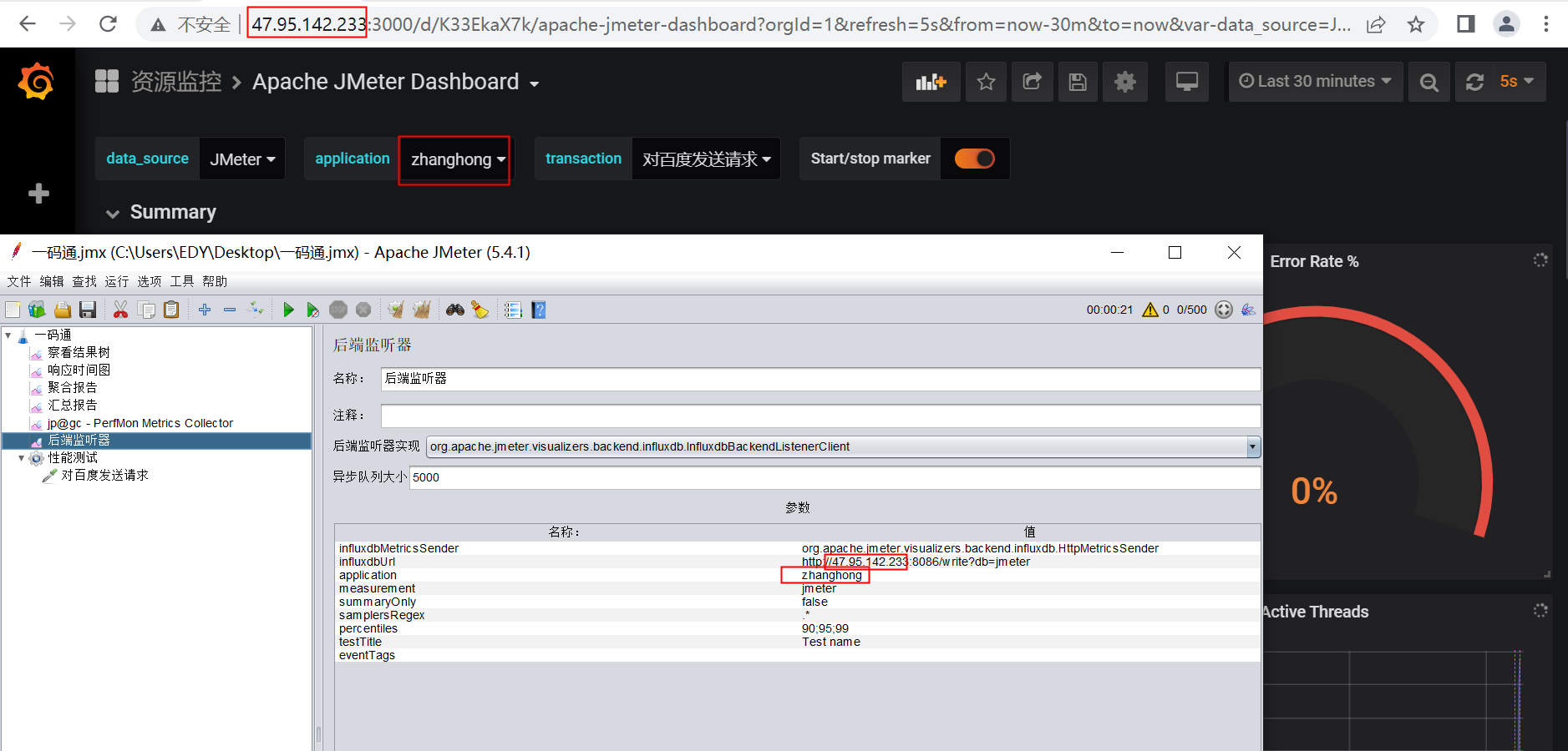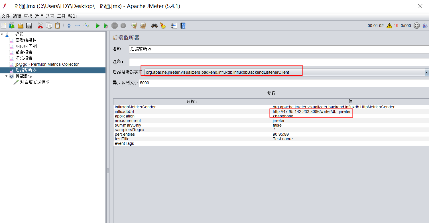 1、由于jmeter展示不是很好看我们把这些数据写到InfluxDB(时序数据库),最后展示在Grafana的平台上