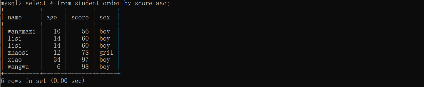 select age,avg(score) as 平均分 from student group by age having 平均分>50 order by 平均分 desc;