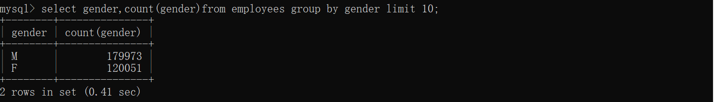 例题1:对employees表中的gender进行分组,然后对每组进行统计