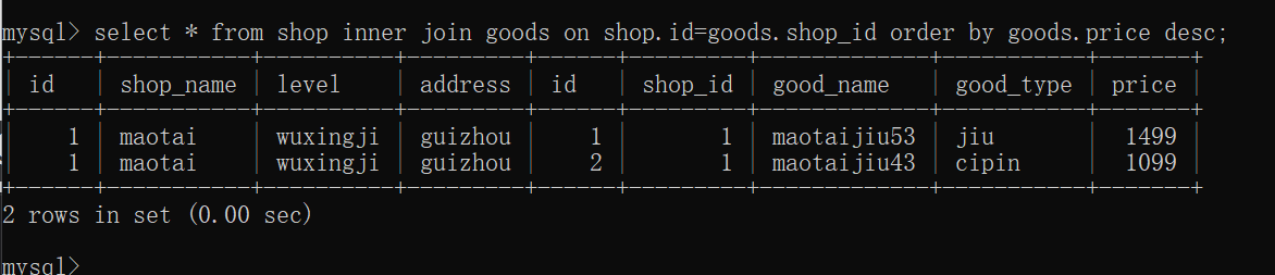 select * from shop inner join goods on shop.id=goods.shop_id order by goods.price desc;