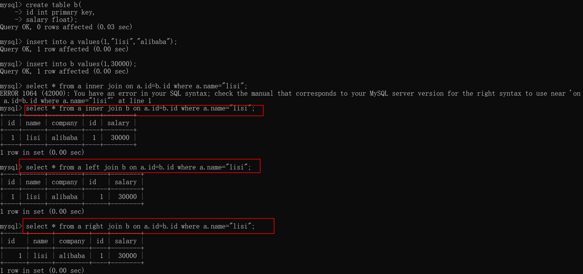 14、mysql中有两个表,表A中有id,name,company,表B中有id,工资,怎么查询李四的工资