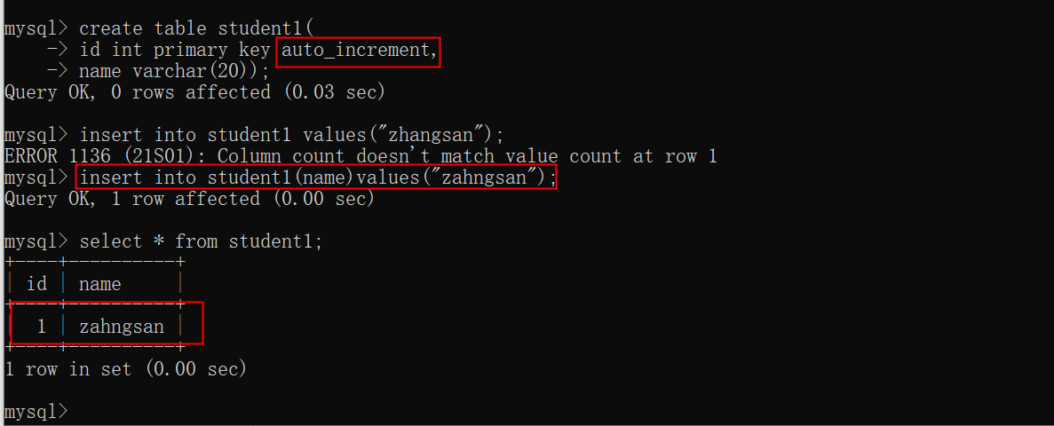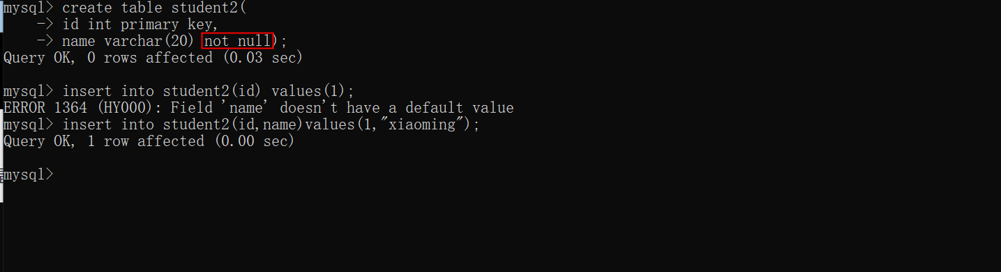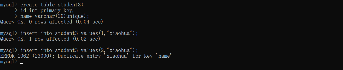 主键约束的2个特性: