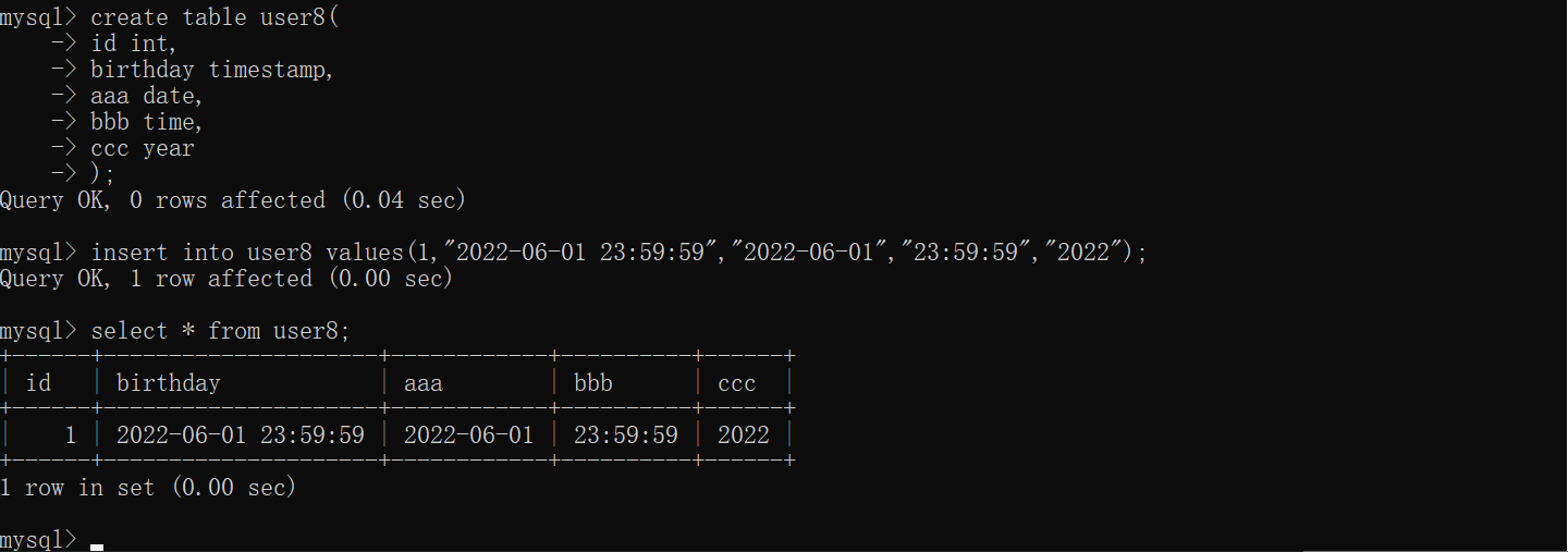 MySQL的时间类型: