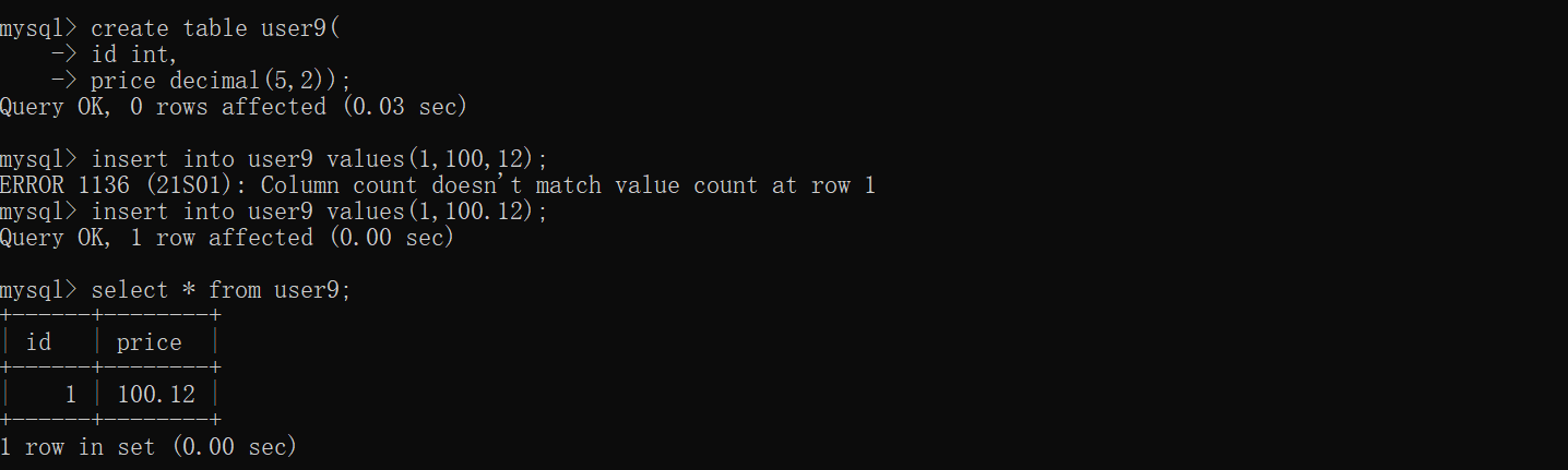 MySQL小数点