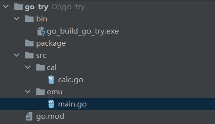 比如下面go_try的prj。创建后执行go mod init go_try。会生成go.mod