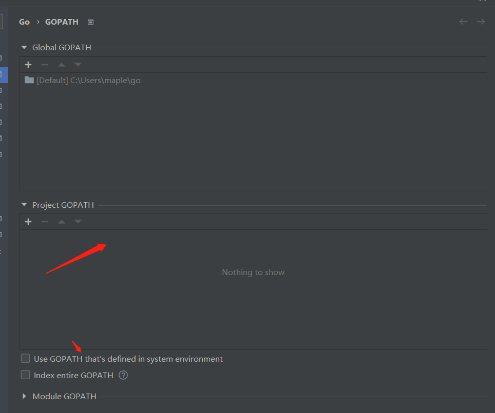 在goland中删除掉GO_PATH的配置以及使用系统的GO_PATH
