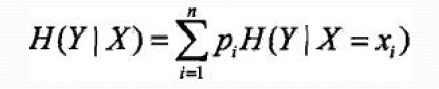 条件熵H(Y|X):表示在己知随机变量X的条件下随机变量Y的不确定性,定义为X给定条件下Y的条件概率分布的熵对X的数学期望: