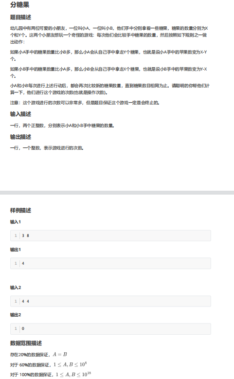 这道题类似于辗转相除法,这道题是辗转相减,每次取余数,如果整除,直接计算答案,并退出,否则继续取余