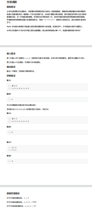尺取法,统计每种颜色出现的位置,定义L和R,计算最大长度