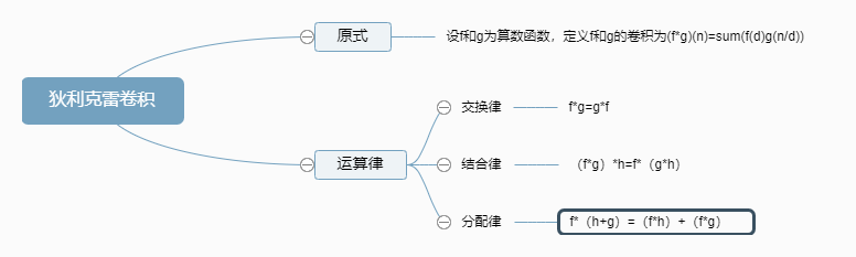 狄利克雷卷积主要在杜教筛中应用,他的原式是:设f和g为算数函数,定义f和g的卷积为(f*g)(n)=sum(f(d)g(n/d))