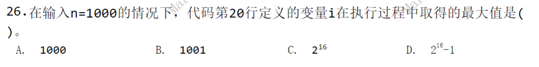 这道题很容易就可以排除AB,很多人就会选D,但是这道题有一个坑,就是i在2^16-1之后,还会加1,故选C