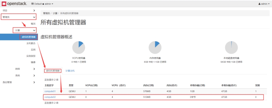 | compute02 | eth0:10.0.0.12,eth1:不配置ip | sda:100G | 2C | 4G |