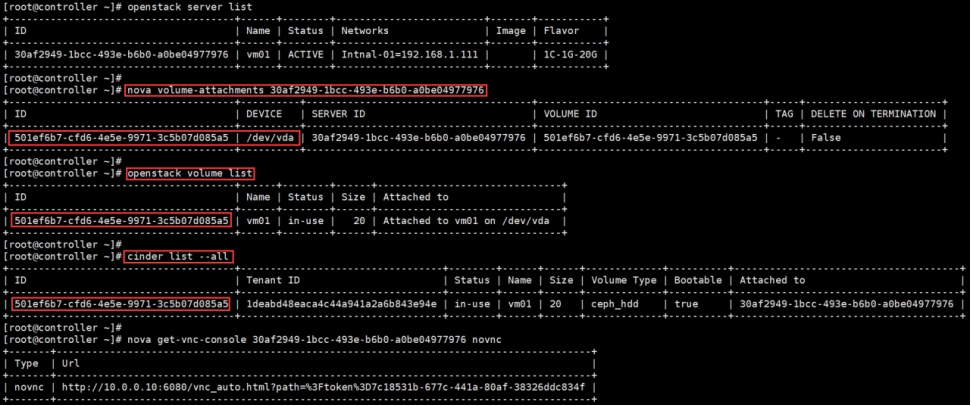 cinder create --name vm01 --image-id $UUID 20 --volume-type $UUID