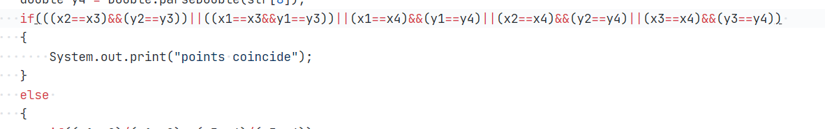 if((x2==x3&&y2==y3)||(x2==x4&&y2==y4)||(x3==x4&&y3==y4)||(x2==x3&&x2==x4))judge=false;