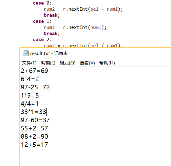 (1)自动生成10道100以内的2个操作数的四则运算算式