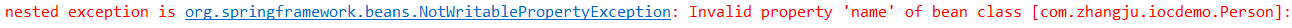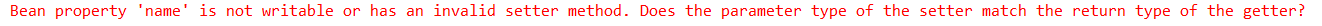 修改方法:bean中的name属性值应该和实体类中的属性名保持一致。