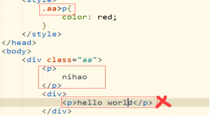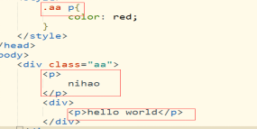 子一代选择器 选择元素儿子级别 .aa>p 选择 .aa 下的儿子级别的 p 标签
