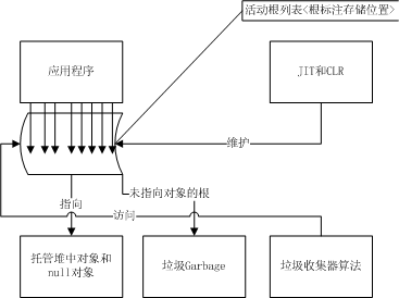 每一个应用程序都有一组根root。根可以用来标志存储位置,这些位置指向托管堆中的对象或者被设为null的对象,称为活动根,并形成一个活动根列表。JIT编译器和CLR维护着活动根列表,列表能够被垃圾收集器算法访问。这样,垃圾被定义为从活动根列表中不能访问的堆上对象。