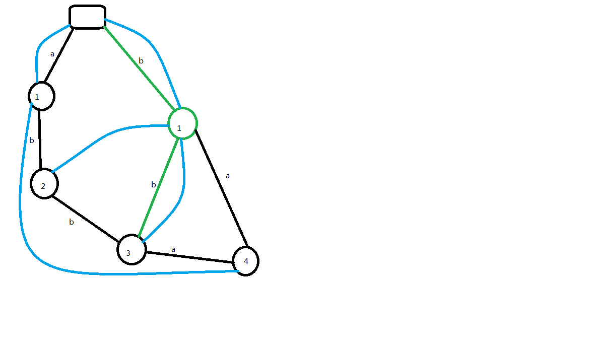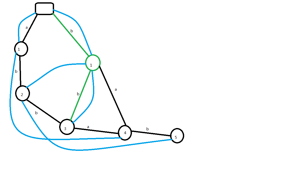 就像这个图,由于顺着a的pre指针向上跳的时候没有任何一个节点有出边b,所以直接将新节点的pre指针指向根节点即可。