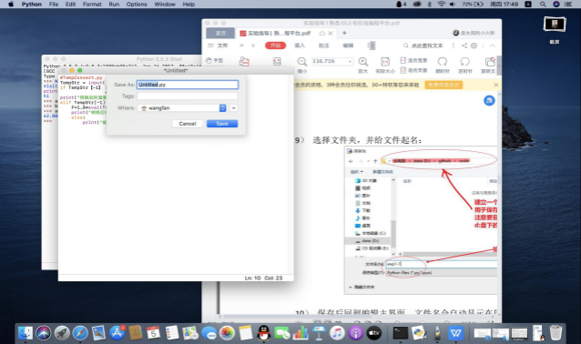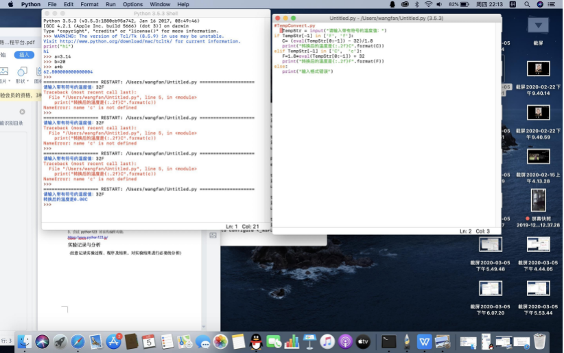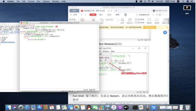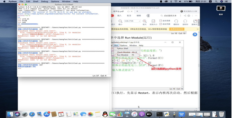 4.发现MacBook端IDLE3无法输入中文指令,打开word输入中文指令,再以commmand c/v形式讲中文指令输入于IDLE中