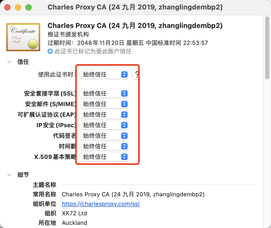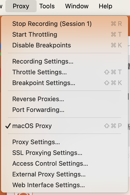 打开 Charles,点击顶部菜单栏的 Proxy -> 勾选 macOS Proxy;
