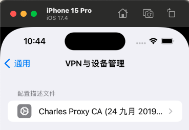模拟器-设置-通用-VPN与设备管理-点击刚下载的描述文件安装
