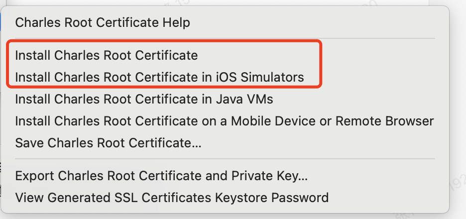 继续在 Charles 里,点击顶部菜单栏的 Help -> SSL Proxying -> Install Charles Root Certificate in iOS Simulators;
