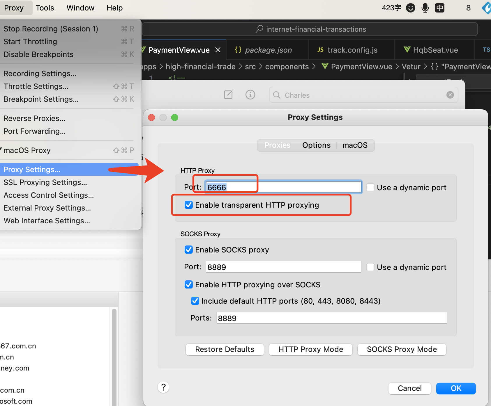 查看端口,一般是8888,也可以自己设置,后面Mac的网络代理端口要跟这个一致就行,勾选enable transparent http proxying
