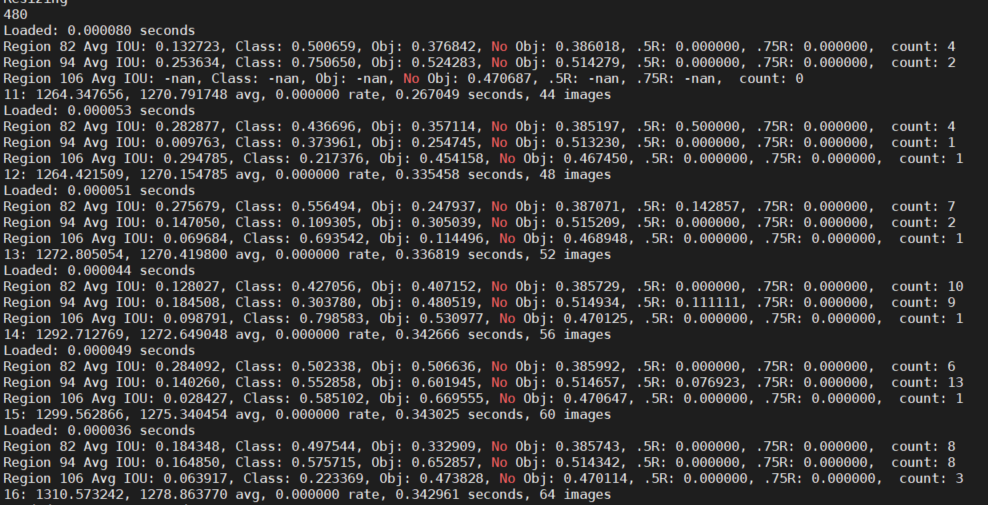 - Avg IOU:当前迭代中,预测的box与标注的box的平均交并比,越大越好,期望数值为1;